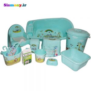 | شامل | آبریز سر کودک, آویز لباس, تشت ۷ لیتری شستشوی لباس کودک, توالت فرنگی کودک, توری آسان شور, جا صابونی, سطل آبکش دسته دار, سطل زباله اتاق کودک, سطل مندرج ۱۸ لیتری درب دار, صندلی حمام کودک, وان حمام نوزاد, گیره لباس |