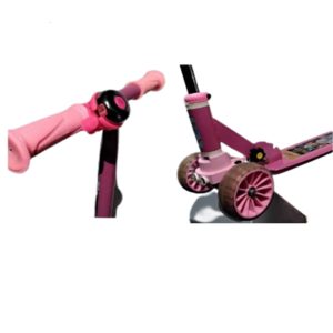 اسکوتر کودک تاشو دارای طرحی کودکانه با رنگ شاد برای کودکان بالای سه سال قابل استفاده است. ابعاد مناسب و قابل حمل این اسکوتر و همچنین قابلیت تاشو بودن آن باعث میشود شما بتوانید این اسکوتر را بهراحتی جابهجا کرده و با خود به سفر، پارک و پیادهروی ببرید. ارتفاع فرمان این اسکوتر قابل تنظیم است و شما میتوانید با توجه به قد کودک خود آن را پایینتر و یا بالاتر ببرید. همچنین جنس دستگیرههای آن از فوم ژله ای است؛ بههمین دلیل دست کودک هنگام گرفتن آن لیز نمیخورد و اذیت نمیشود و احساس راحتی میکند. چرخهای این اسکوتر از پلاستیک ژلهای است و مقاومت بالای آن اجازهی استفاده در مدت زمان طولانیتری را میدهد و انعطافپذیری بیشتری نیز خواهد داشت. این اسکوتر دارای کمک فنر نیز میباشد که ضربات وارده به دست و بدن کودک را کاهش میدهد.
