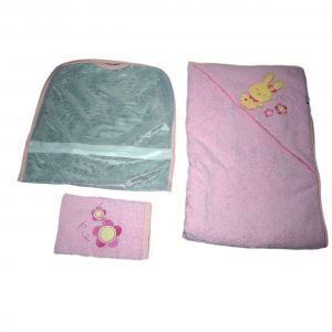 ست ۲ تکه حوله کودک کد۲۱۲ : این ست شامل یک عدد حوله کلاه دار نوزادی و یک عدد لیف می باشد.حوله دارای کلاه با طرح کارتنی است که امروزه در بین کودکان محبوبیت بسیاری دارد.جنس حوله و لیف از ۱۰۰ درصد پنبه می باشد.یکی از مهمترین موارد در مراقبت از پوست کودک شستوشو منظم است. حمام کردن به صورت روزمره و درصورت امکان در زمان معینی از روز به کودک احساس آرامش و طراوات میدهد و برای نوزادانی که از پوشک استفاده میشود برای جلوگیری از ایجاد قرمزی و در اصطلاح عامیانه سوختگی پوست کودک میبایست بدن نوزاد را روزانه و به صورت موضعی شستوشو داد.