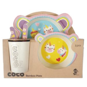 ظرف کوکو بامبو محصول برند کوکو می باشد، این ظرف از جنس درخت بامبو ساخته شده و مقاومت بالایی دارد به گونه ای که اگر بیفتد نمی شکند. در ساخت این ظرف غذا هیچگونه مواد شیمیایی بکار نرفته لزا مادران نگرانی بابت این قضیه نداشته باشند. با توجه به رنگ و طرح شاد کودکانه ای که این سرویس ۵ تکه دارد والدین با خرید این ظرف غذا کودک خود را به غذا خوردن تشویق می کنند. تحمل دمای این ظرف غذا بین ۳۰ تا ۱۲۰ درجه سانتی گراد، که قابلیت شست و شو با دست را دارد اما به دلیل جنسی که دارد نمی توانید از آن در داخل مایکرو وویو استفاده کنید. ظرف غذای کوکو بامبو دارای ۵ تکه قاشق و چنگال، کاسه، بشقاب و لیوان می شود که کاسه آن نیز دارای ابعاد ۱۴×۱۴×۵ سانتی متر می باشد.