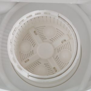- حجم کمی از لباسها را درون دستگاه ریخته و دکمه روشن کهنه شور را بزنید. باید توجه داشته باشید که مقدار آب را تا ۱۰ سانتیمتری دهانه لباسشویی سطلی پر کنید؛ زیرا حجم کم آب باعث آسیب دیدن لباسها میشود.