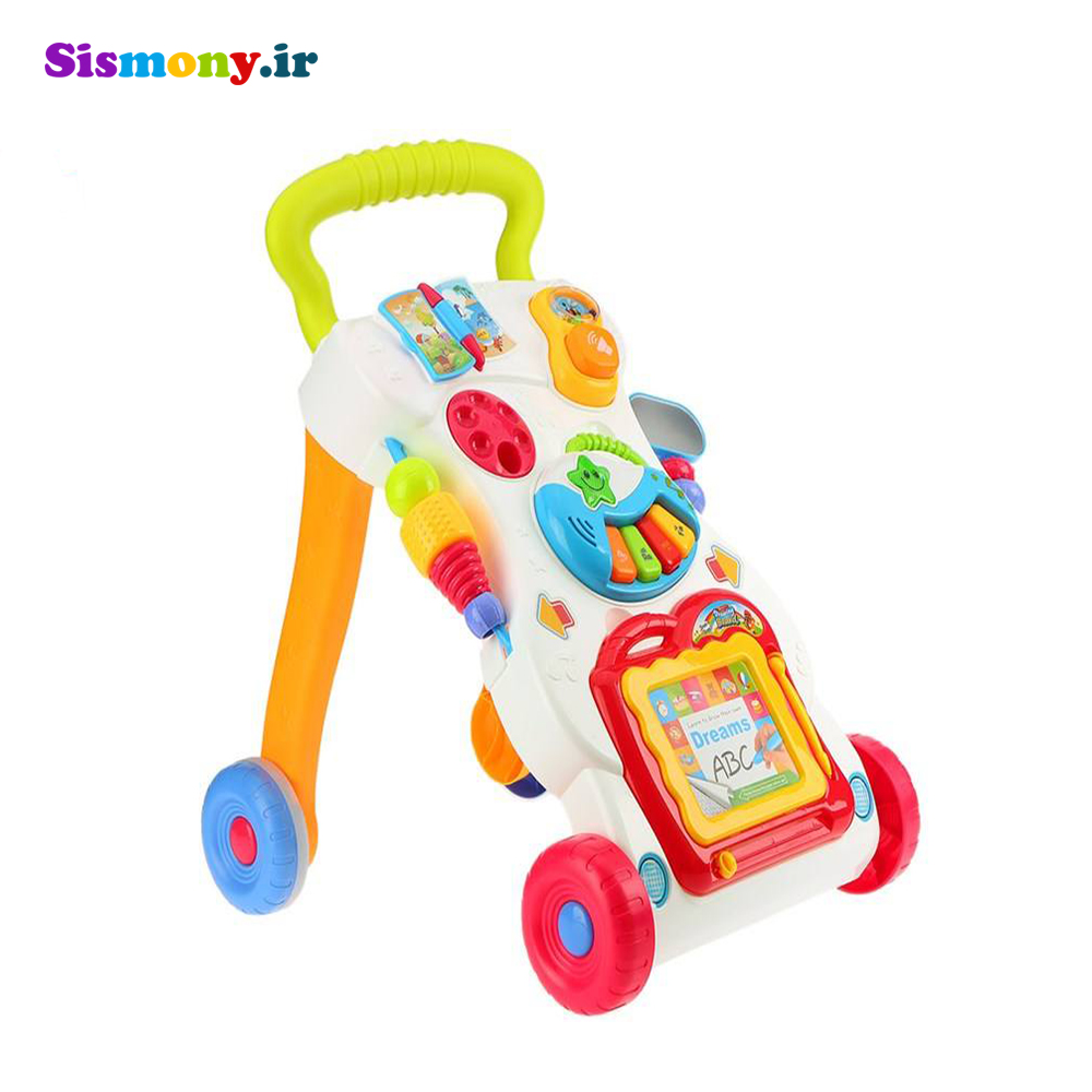 واکر کودک هوان گر : یک واکر کامل برای آموزش ایستادن و راه رفتن کودک با تلفن همراه جدا شونده. صفحه پیانو با پنج کلید چراغدار که صفحه پیانو از واکر جدا می شود. به همراه توپ های چرخنده و آیینه باز تابنده.با فشار دادن دکمه های تلفن همراه صدای حیوانات پخش می شود. با ملودی های سرگرم کننده و اهنگهای صوتی جذاب می باشد. دارای دستگیره خوشدست که به راحتی کودک می تواند آنرا در دست گرفته و همراه با واکر حرکت کند.به وسیله سه عدد باطری تغذیه می گردد.